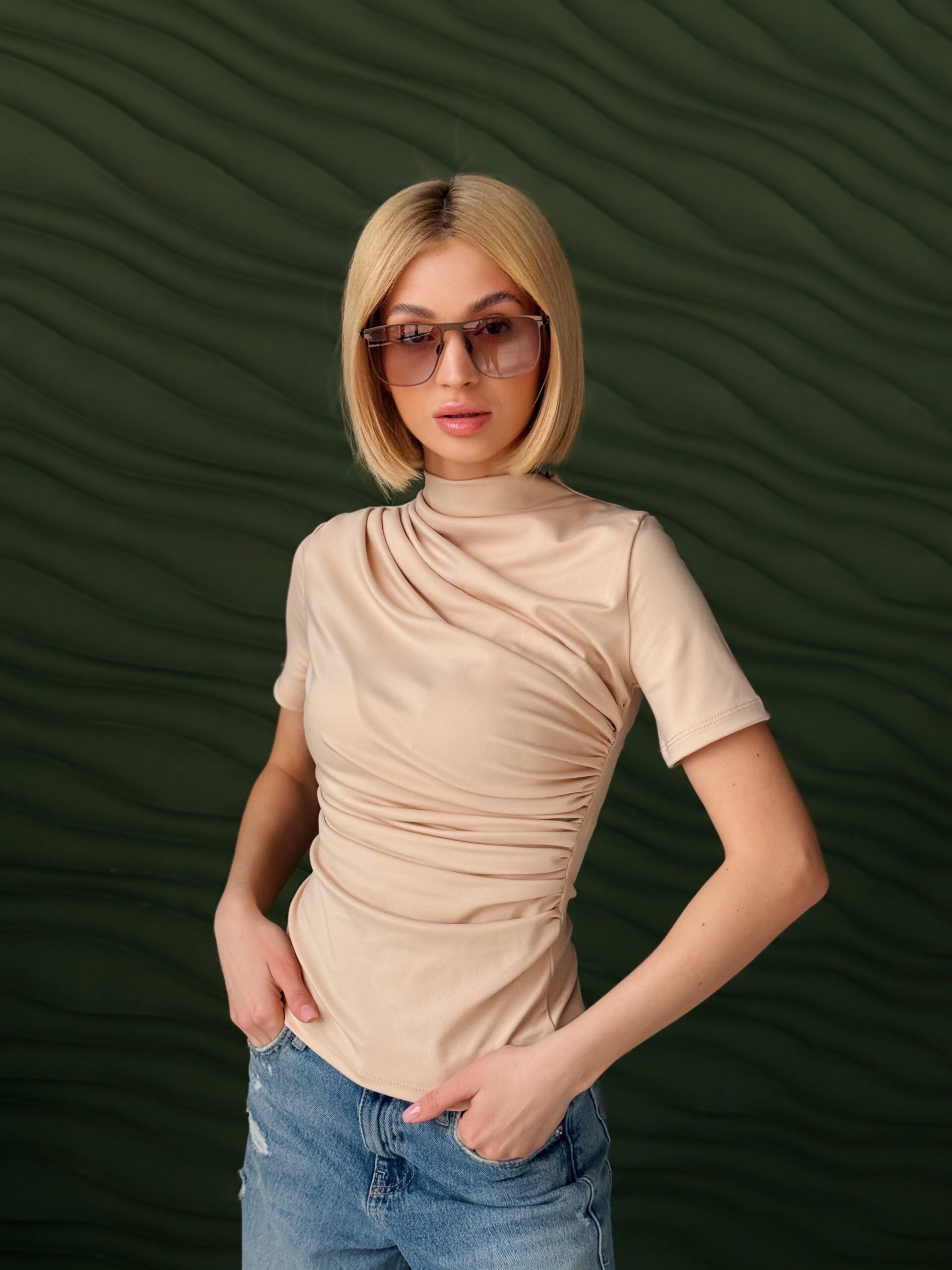 Драпірована приталена футболка