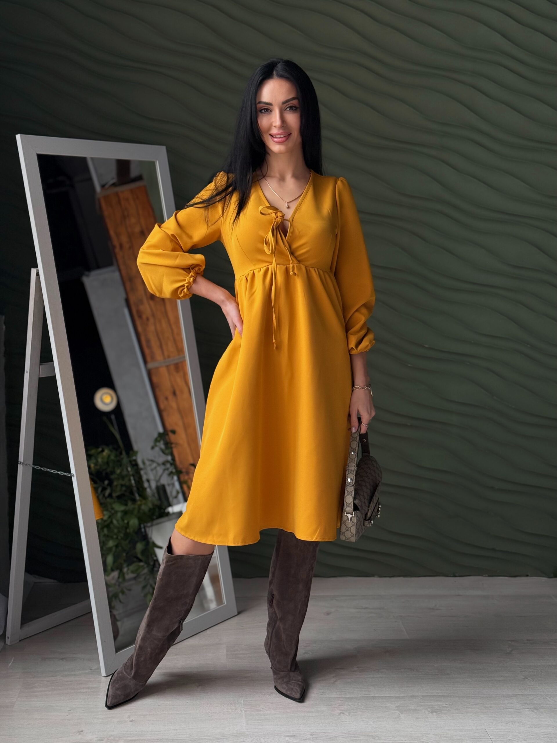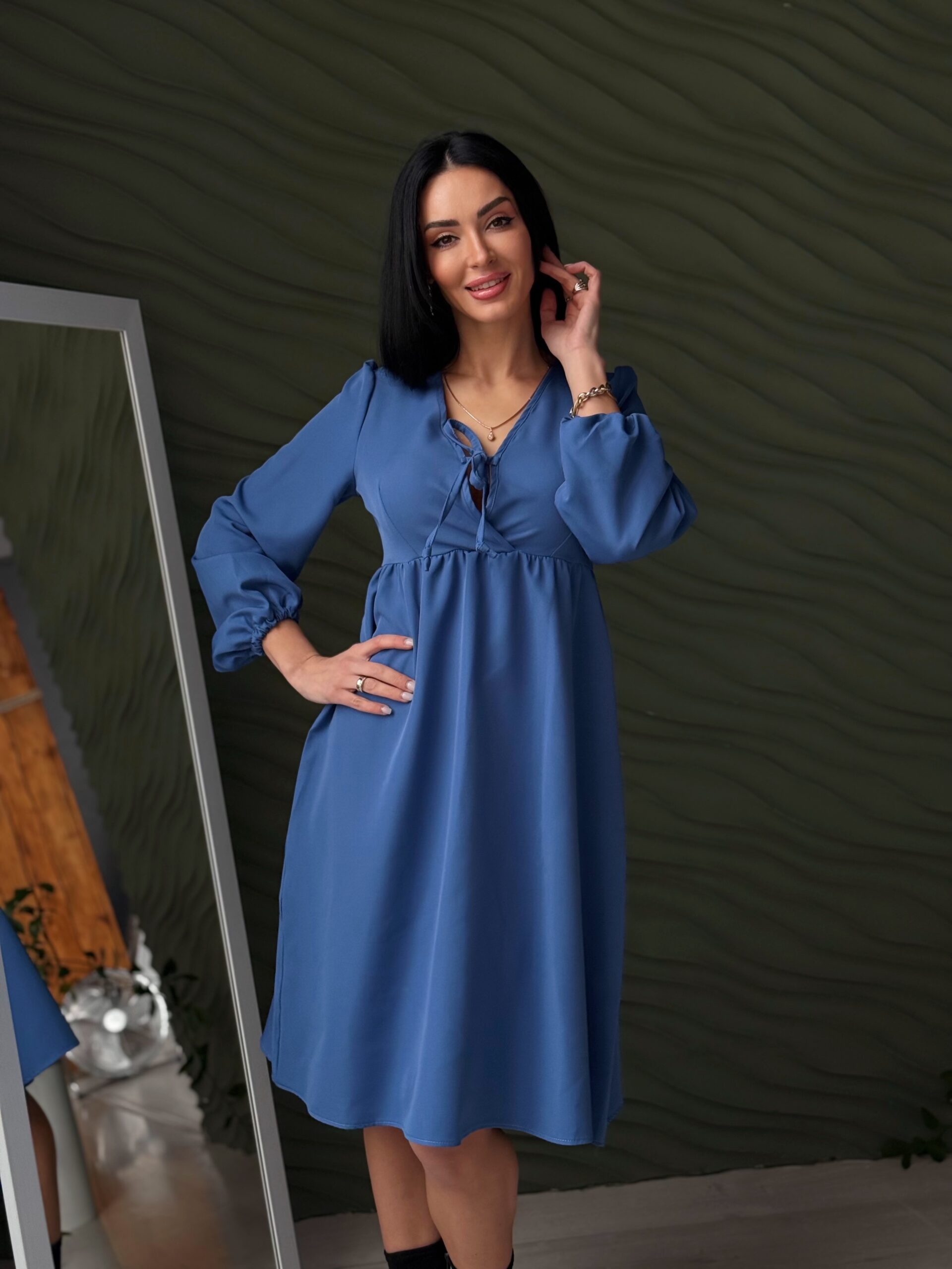 - Завищена талія візуально витягує силует і підкреслює жіночність.