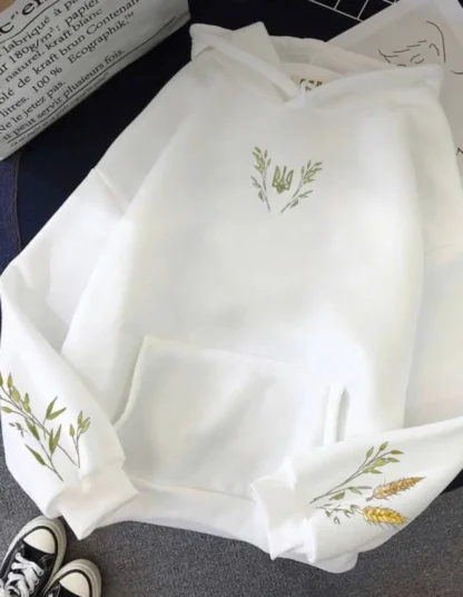 - Дизайн: Худі прикрашене стильним малюнком, розташованим на грудях і рукавах, що додає яскравості та унікальності.