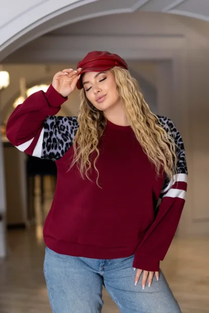 - Стильні вставки з трендовим леопардовим принтом на рукавах додають яскравого модного акценту до класичного дизайну.