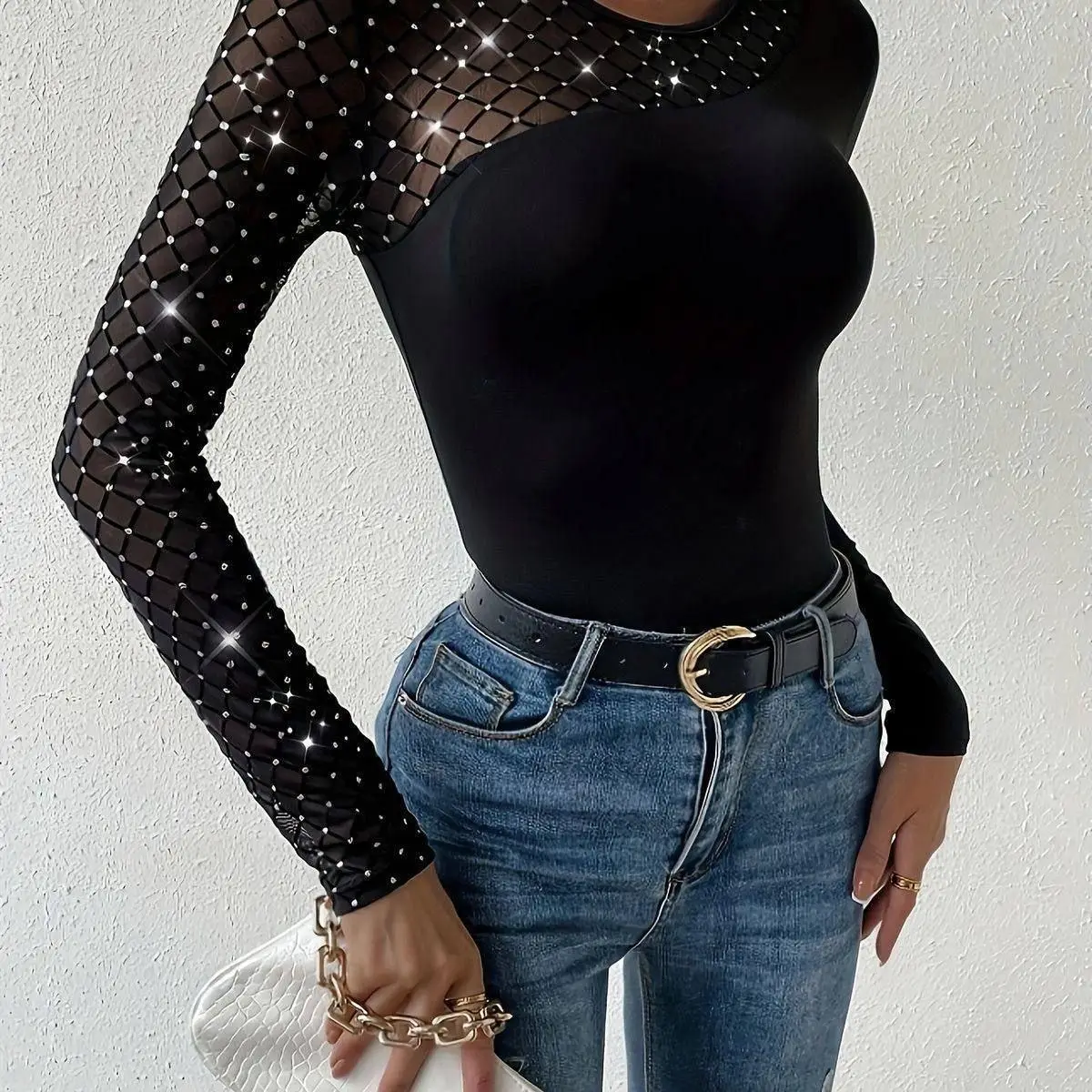 - Декольте та один рукав виконані із сітки “алмаз” з блискітками, які створюють ефект мерехтливого сяйва, додаючи образу легкості, грайливості та нотку вишуканої сміливості.