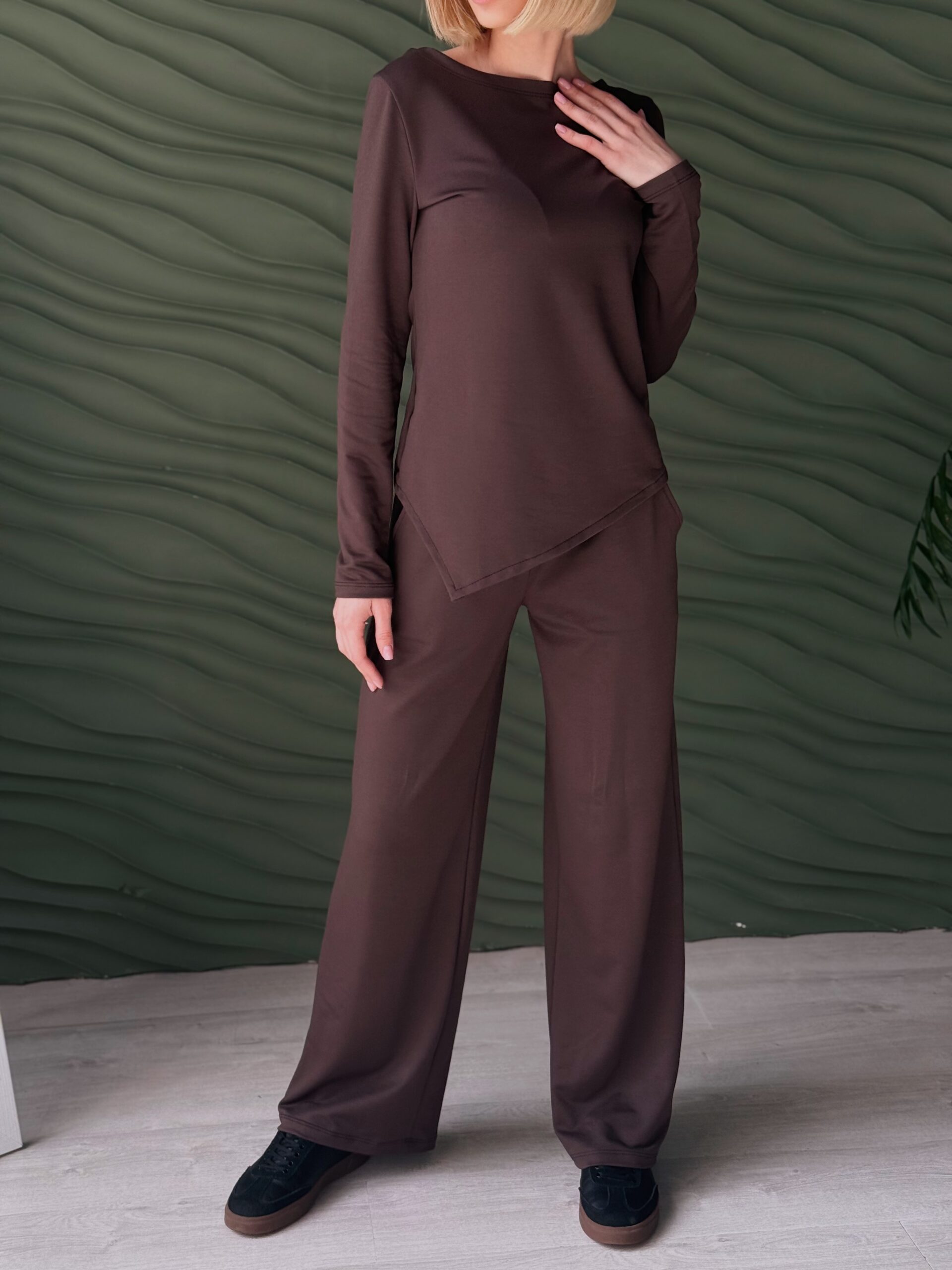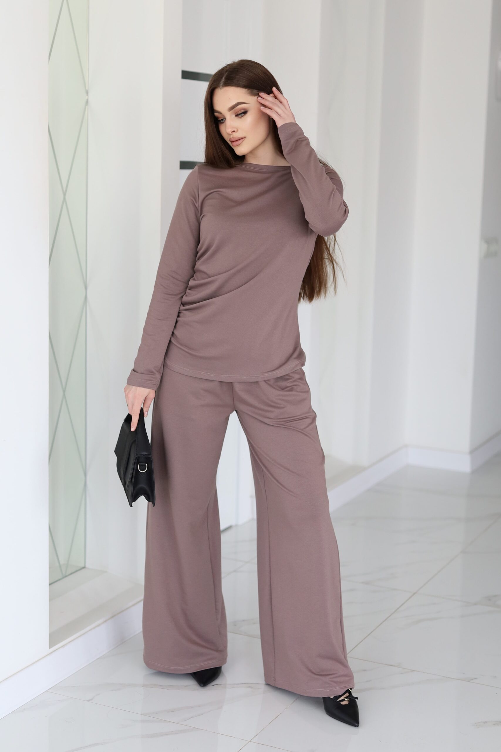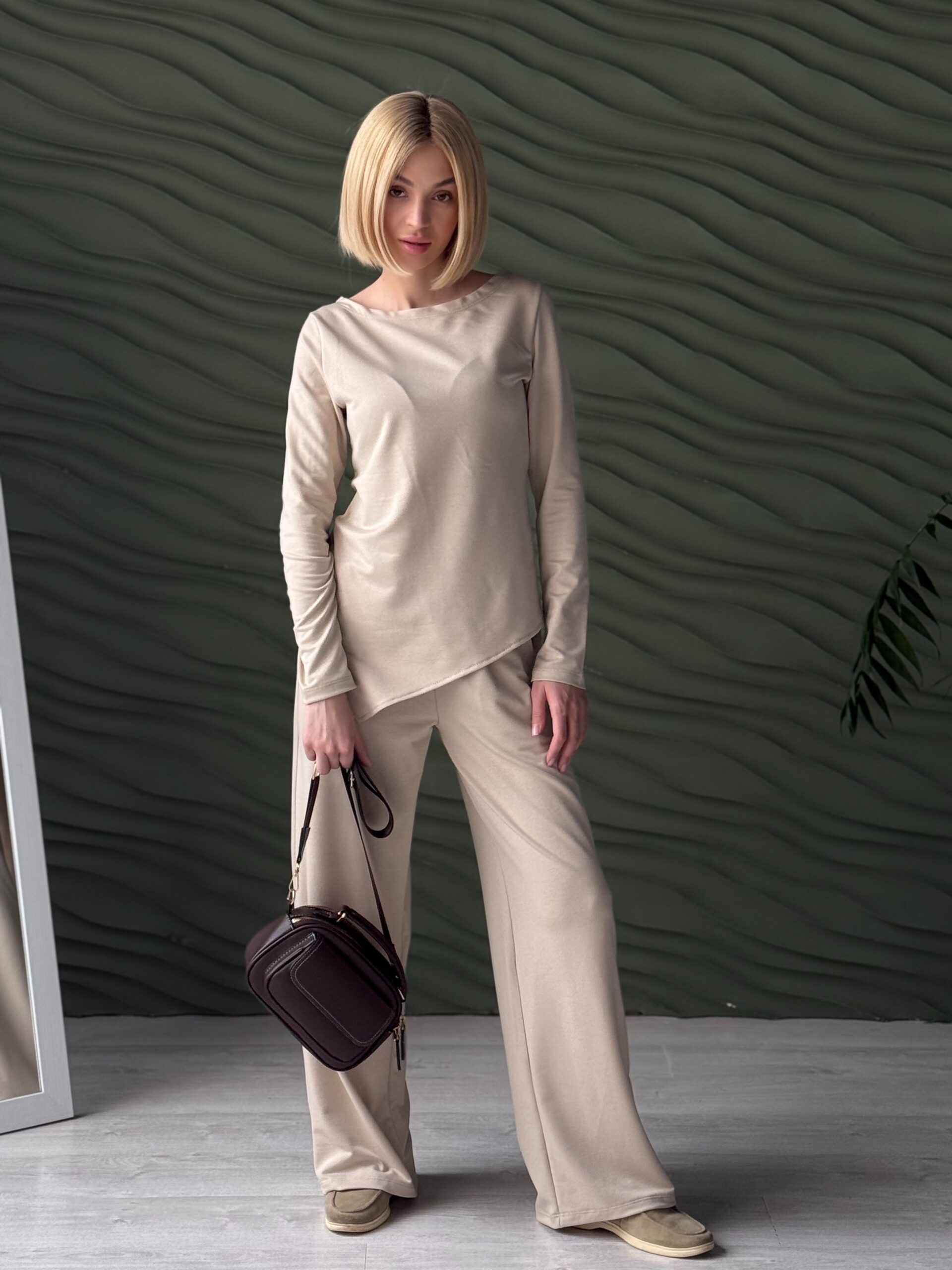 Костюм виготовлений із трикотажної тканини двонитка — це ідеальний варіант для щоденного носіння. Матеріал приємний до тіла, добре пропускає повітря, не парить, зберігає форму після прання та відрізняється високою зносостійкістю.
